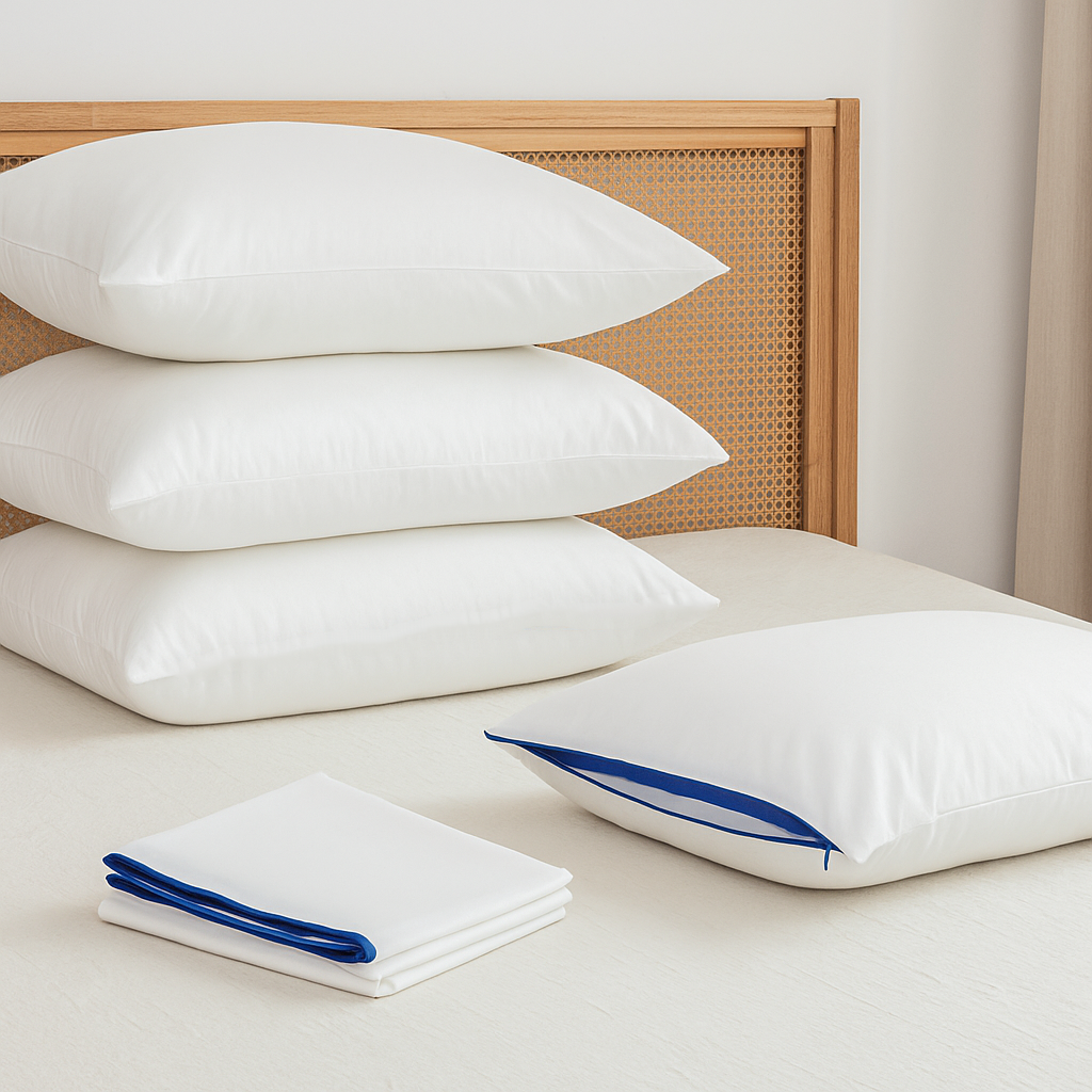 دلّع نفسك بنوم هادي ومريح مع الباقة الفندقية دي اللي بتجمع بين النعومة والدعم المثالي أثناء النوم. الباقة بتحتوي على 4 كيس مخدة من القطن الناعم اللي بيدّي إحساس فريش ومنعش على البشرة. وكمان 4 مخدات فندقية بحشو متوازن بوزن 1300 جم علشان تدعم رقبتك ورأسك بشكل مثالي سواء كنت بتنام على ضهرك أو جنبك. المجموعة دي مناسبة لأي سرير وبتقدملك شكل شيك وراحة فندقية كل يوم.