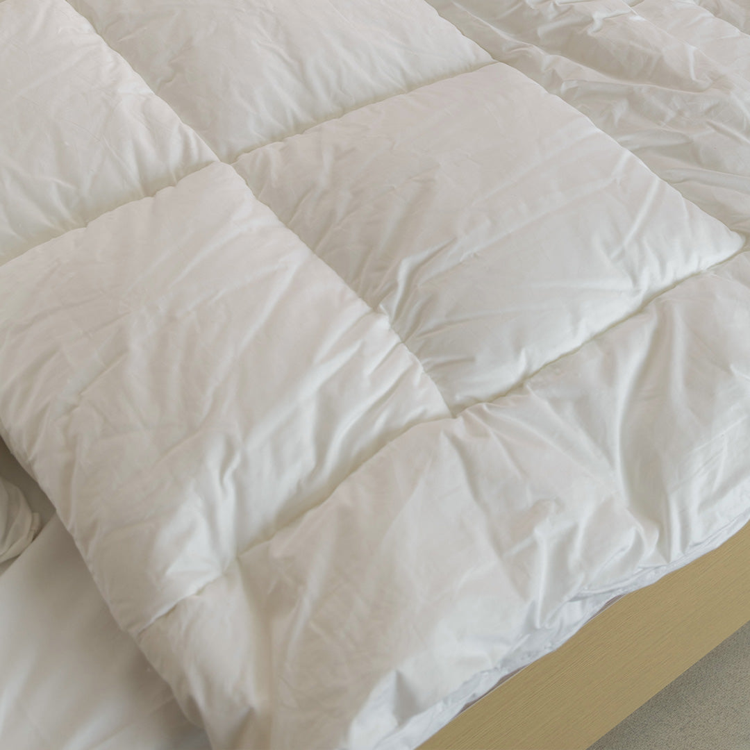 اللون الأبيض الأنيق بيضيف لمسة فندقية نظيفة لأوضة نومك، واللحاف بنفسه بيكمل شكل السرير وبيوفر راحة مثالية.